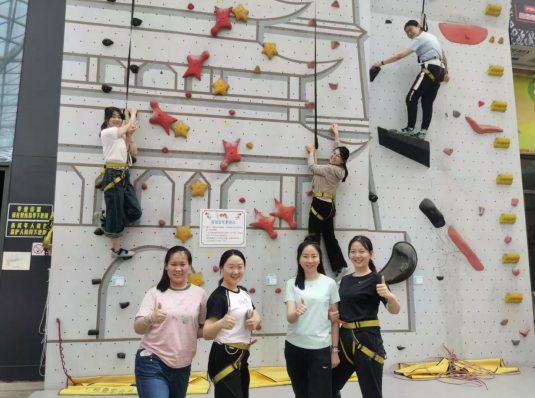 攀巖環(huán)節(jié)將活動(dòng)推向高潮。在專業(yè)教練指導(dǎo)下,團(tuán)員們穿戴護(hù)具,依次挑戰(zhàn)8米高的巖壁。面對陡峭的賽道,隊(duì)員們以“敢為人先”的勇氣迎難而上,指尖緊扣巖點(diǎn),腳步穩(wěn)扎穩(wěn)打,用汗水詮釋“奮斗是青春最亮麗的底色”。許多人從最初的緊張到逐漸突破自我,最終登頂時(shí)全場歡呼。“巖壁上的每一步都需要專注和勇氣,就像工作中攻克難關(guān)一樣,當(dāng)代青年亦需在挑戰(zhàn)中突破自我!”大家感慨道。