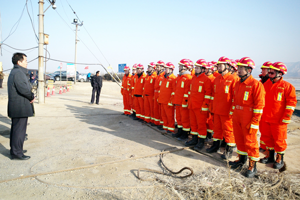 1月20日16時30分,省突發(fā)地質(zhì)災(zāi)害應(yīng)急排查突擊總隊接到省環(huán)保廳環(huán)境污染應(yīng)急救援指令。經(jīng)請示集團公司黨委書記、董事長、突擊總隊領(lǐng)導(dǎo)小組組長趙廷周同意,即時啟動應(yīng)急響應(yīng)。17時10分,集團公司副總經(jīng)理、突擊總隊指揮長馬貴鎖率突擊總隊辦公室、渭南支隊、商洛支隊30名突擊隊員,攜帶相關(guān)應(yīng)急救援物資和設(shè)備,分乘8輛應(yīng)急救援車,從西安、渭南、臨潼3地迅速向渭南市合陽縣洽川鎮(zhèn)集結(jié)。