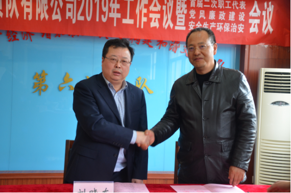 會上,劉曉東與公司所屬各單位(部門)簽訂了《2019年黨風廉政建設責任書》和《2019年安全生產與治安保衛工作目標責任書》,王和平與公司各經營單位負責人簽訂了《2019年經營目標責任書》。