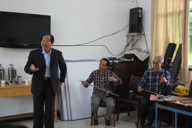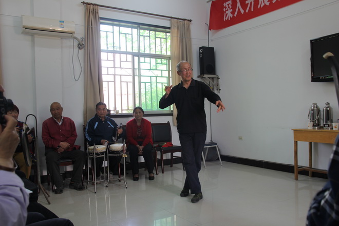 李主任一行來(lái)到我隊(duì),顧不上旅途的勞累,直奔正在積極準(zhǔn)備的秦腔演出現(xiàn)場(chǎng)。在看到秦“迷”們井然有序的安排和精心的準(zhǔn)備后,李主任非常滿意。隨后,秦“迷”們分別就自己拿手的秦腔節(jié)目做了匯報(bào)演出,國(guó)家一級(jí)演員任炳漢對(duì)每位秦“迷”唱腔、演功及伴奏做一一點(diǎn)評(píng),并肯定每位秦“迷”們對(duì)秦腔傳統(tǒng)藝術(shù)的熱愛(ài),以及對(duì)傳統(tǒng)藝術(shù)傳承的執(zhí)著精神。對(duì)基層秦“迷”們能提供這樣的一個(gè)活動(dòng)場(chǎng)所的單位領(lǐng)導(dǎo)表示感謝。在大家的盛情邀請(qǐng)下,任炳漢先生進(jìn)行了示范表演。