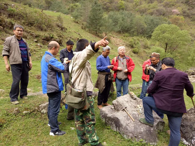 在驗(yàn)收期間,專家組在詳細(xì)聽(tīng)取了項(xiàng)目負(fù)責(zé)趙西鋒關(guān)于項(xiàng)目野外工作情況匯報(bào)后,重點(diǎn)對(duì)發(fā)現(xiàn)的金礦化點(diǎn)和兩條晶質(zhì)石墨、金紅石、矽線石礦帶進(jìn)行了實(shí)地檢查驗(yàn)收。