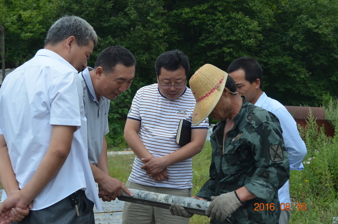 2016年8月15日劉曉東隊(duì)長(zhǎng)前往我隊(duì)礦權(quán)中心鎮(zhèn)安漆樹(shù)凹-桂林溝鉬多金屬礦,檢查指導(dǎo)工作并看望一線職工,分管礦權(quán)中心副隊(duì)長(zhǎng)夏元鵬、紀(jì)委書(shū)記王和平一同前往。