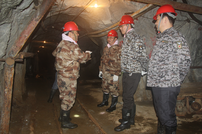 這次檢查是總公司按照省上要求統一部署的非煤礦山安全生產大檢查。上午在與興地公司干部職工座談會上,劉建勤聽取了隊長劉曉東關于我隊2016年生產經營目標任務完成、安全生產管理情況及隊黨委書記王戰社關于我隊黨的建設、和諧穩定工作及“兩學一做”學習教育情況工作匯報。隨后劉建勤到興地公司黨支部黨員活動室建檢查指導工作。下午,劉總一行深入到隊興地公司898豎井、185一坑、二坑、850炸藥庫、秦太選廠等重點項目進行了實地檢查,認真檢查了有關安全生產文件、規章制度、會議記錄、檢查記錄和安全臺賬等,并深入到898豎井下對該井安全設施運行情況進行了細致檢查。