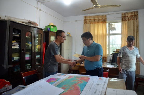 圖為白林科為小秦嶺物探項目組送慰問金