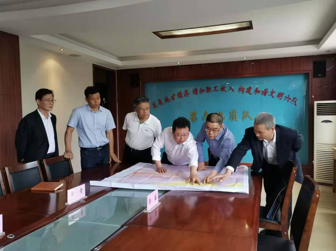 座談會上,劉曉東首先對屈總一行蒞臨我隊調研指導工作表示感謝。隨后劉曉東向屈總一行詳細介紹了我隊歷史沿革、職工隊伍、四大產業板塊經營發展、改革管理和“十四五”產業發展規劃、目標等。屈永安詳細詢問了潼關礦區六大中深部探礦工程開展情況、工程布設、探采礦系統設計、安全管理投入和存在困難。劉曉東在匯報中指出,我隊是一個具有深厚歷史底蘊、雄厚技術力量和實體產業基礎的綜合地勘單位。我隊長期扎根潼關小秦嶺金礦田,在地質勘查、礦產開發和鉆探工程施工等方面積累了豐富的技術資料和找礦成果。上世紀八十年代我隊在國內地勘單位中首開“勘查開發一體化”經營,并步入了黃金產業發展的一個高峰。進入新世紀以后,尤其是2011年“小秦嶺國家級整裝勘查區”設立以來,我隊抓住機遇,在潼關礦區布設了六大中深部探礦工程和一個選礦項目,目前利用這些探礦工程,我隊已經在潼關中深部探礦過程中實現了較好的探礦突破,礦業也初步成為我隊產業發展的龍頭。此外,地質勘查大力實施“走出去”和“大地質”戰略,經營發展逆勢上揚;工程施工穩扎穩打,技術實力全省領先;民生地質雖起步較晚,但經營規模逐年增大,目前已步入發展正軌。