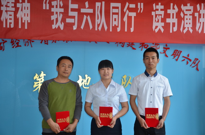 圖為后勤服務(wù)中心黃鷹、經(jīng)濟(jì)工作部選手許婷婷、工程公司選手劉科科分獲演講比賽“三等獎(jiǎng)”